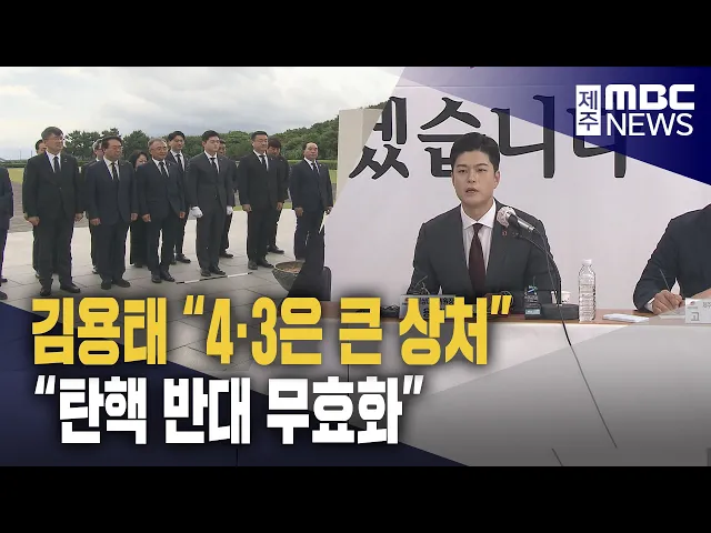 ◀ 앵 커 ▶ 대선에서 패배하면서 야당이 된 국민의힘의 김용태 비상대책위원장이 제주를 방문했습니다. 김용태 위원장은 4.3은 정부 수립 과정의 큰 상처이며 국민의힘이 변화하려면 탄핵 반대 당론만큼은 무효화해야 한다고 밝혔습니다. 조인호 기자입니다. ◀ 리포트 ▶ 전국 순회 방문 첫번째...