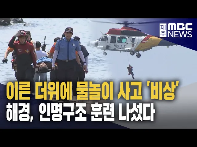 ◀ 앵 커 ▶ 올해는 이른 장마와 함께 무더위가 시작되면서 벌써부터 물놀이 사고가 잇따라 발생하고 있는데요. 해수욕장 개장을 앞두고 사고가 늘어날까 비상이 걸린 해양경찰이 인명구조 훈련을 실시했습니다. 조인호 기자입니다. ◀ 리포트 ▶ ◀ SYNC ▶ 해양경찰 훈련 메시지 "삼양해수욕장에서 튜브를 타고 있던 물놀이객 3...