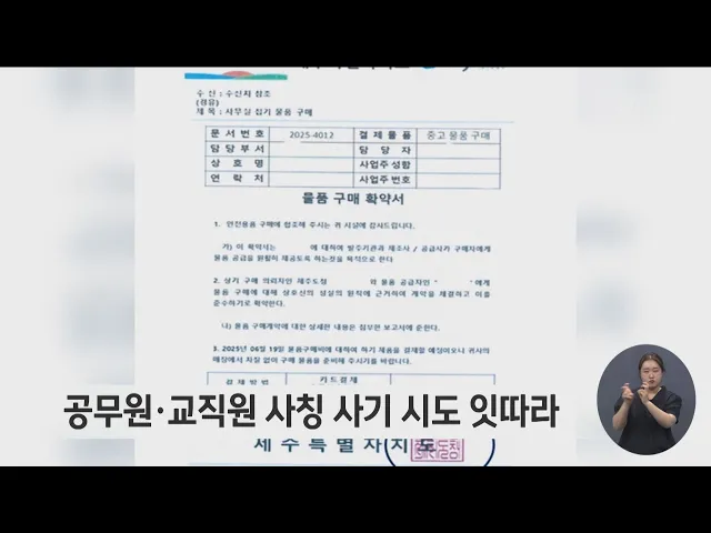 공무원과 교직원을 사칭하는 사기 시도가 잇따라 발생했습니다. 제주도는 제주도청 공무원을 사칭한 사람이 중고물품업체에서 물건을 사겠다며 실제 공무원 이름과 부서 전화번호가 적힌 허위 공문서를 보냈다며 수사를 의뢰하겠다고 밝혔습니다. 서귀포경찰서도 제주대 기획처장을 사칭한 사람이 행사기획사에 교직원증 사...