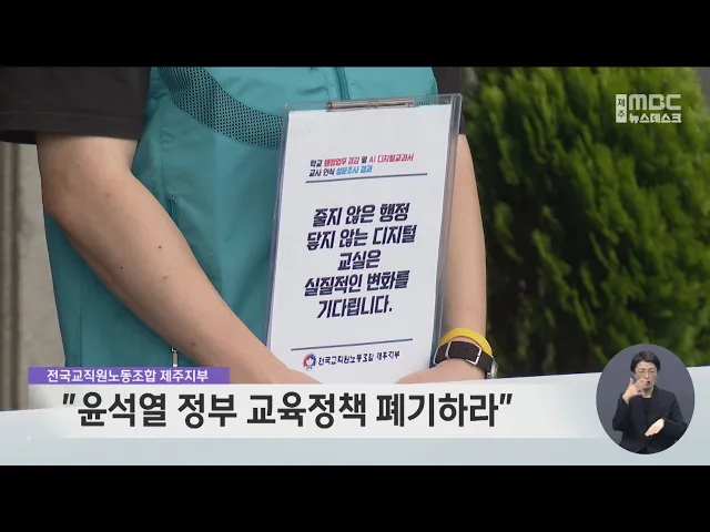 전교조 제주지부는 제주도교육청 앞에서 기자회견을 갖고 윤석열 정부의 교육정책을 전면 재검토하고 폐기하라고 요구했습니다. 전교조는 교사들에게 AI 디지털 교과서에 대해 설문조사한 결과 80% 이상이 수업에 도움이 되지 않아 활용하지 않는다고 응답했다고 밝혔습니다. 또, 교사의 70% 이상은 최근 몇년간 행정업무가...