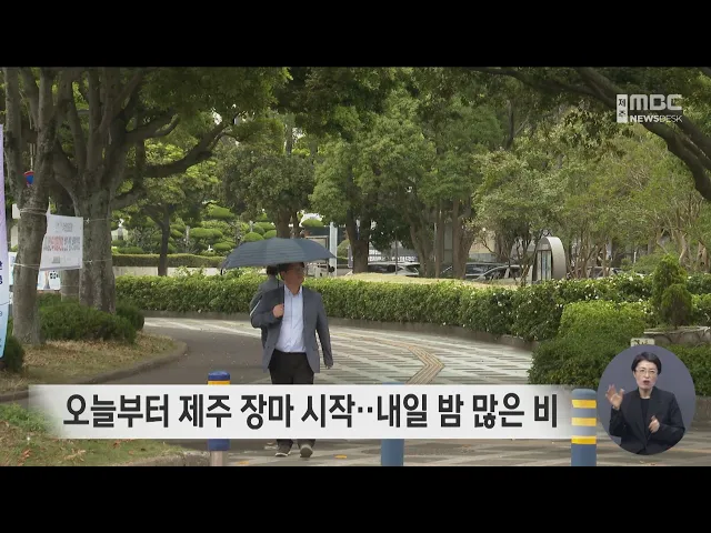 제주지방에 오늘부터 장마가 시작됐습니다. 제주도 남쪽 바다에서 정체전선이 북상하면서 5mm 이하의 안팎의 비가 내렸고, 비는 소강상태를 보이다 내일 오후부터 다시 오겠습니다. 모레까지 해안지역에는 50에서 120mm, 산지에는 250mm가 넘는 많은 비가 오겠습니다. 기상청은 내일 밤부터 모레 오전 사이에 시간당 30에서...