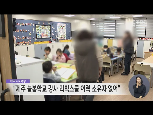제주도교육청은 도내 초등학교 늘봄학교 강사 중 리박스쿨 관련 이력 소유자는 없는 것으로 확인됐다고 밝혔습니다. 교육청은 모든 초등학교를 조사한 결과 리박스쿨 관련 자격증이나 이수증을 제출해 채용된 사례는 없었으며, 관련 단체와 협약을 통해 운영된 프로그램도 없었다고 밝혔습니다. 교육청은 앞으로 늘봄학교 ...