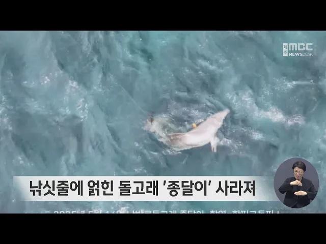 낚싯줄에 얽힌 새끼 남방큰돌고래 종달이가 구조 시도 1년 8개월 만에 사라졌습니다. 제주돌고래긴급구조단은 지난달 14일 서귀포시 대정읍 앞바다에서 종달이가 얼굴부터 꼬리까지 낚싯줄에 감긴 채 발견돼 다음 날 긴급 구조를 시도했지만 아직까지 찾지 못했다고 밝혔습니다. 구조단은 종달이의 어미가 다른 무리와 함께...