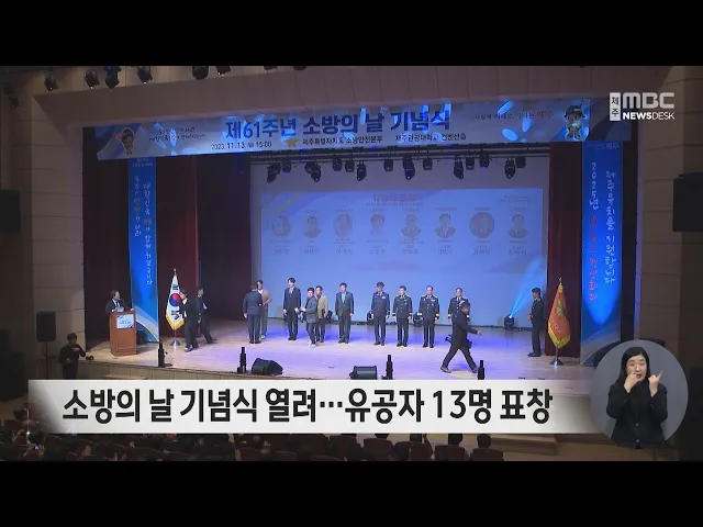 제 61주년 소방의 날 기념식이제주관광대 컨벤션홀에서 열렸습니다. 기념식에서는 제주 안전을 위해헌신한 유공자 13명이 표창을 받았고 소방공무원 밴드의 공연과 소방제복 런웨이 쇼 등이 진행됐습니다. 오영훈 지사는 소방공무원들이자부심과 긍지를 갖고 활동할 수 있도록제주도정이 뒷받침하겠다고 말했습니다.