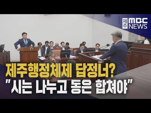◀ 앵 커 ▶제주형 행정체제 개편과정에서행정구역이 어떻게 바뀔지도 관심거리인데요.오영훈 제주도지사가 도의회 도정질문에서 시는 대여섯 개로 나누고 인구가 적은 동은 합쳐야 한다고 밝혔습니다. 조인호 기자입니다. ◀ 리포트 ▶현재 제주도의 행정구역은한라산을 경계로 크게 제주시와 서...