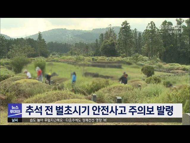 제주도소방안전본부는 추석을 앞두고 벌초시기 안전사고 주의보를 발령했습니다. 제주 사고손상감시시스템에 따르면 최근 3년간 벌초작업 중 안전사고 100건이 발생했고, 85%는 추석 전인 8월과 9월 사이에 발생했습니다. 원인은 예초기 등 농기계 사고가 42%, 시간대는 오전 9시경이 19%로 가장 많았고 농기계를 주로 다...