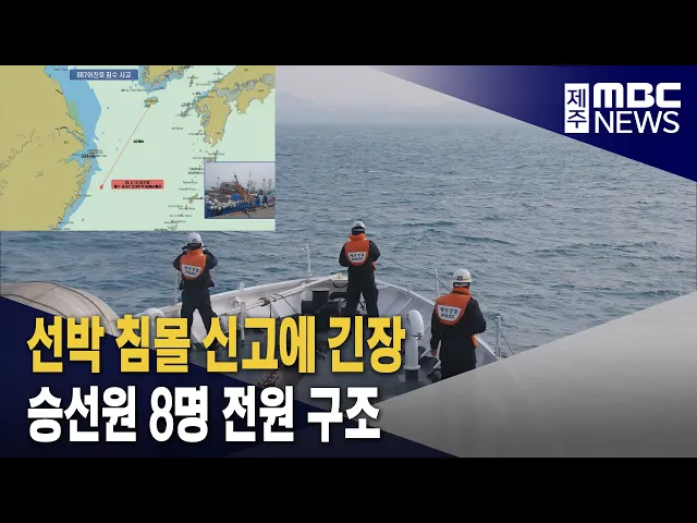 ◀ 앵 커 ▶ 오늘 저녁 제주도 남서쪽 먼 바다에서 고기잡이하던 어선이 침수중이라는 신고가 접수됐습니다. 어선에는 선원 8명이 타고 있었는데 아직까지 인명피해나 구조 여부는 확인되지 않고 있습니다. 취재기자를 전화로 연결합니다. 조인호 기자! (c.g) 네, 사고가 발생했다는 신고가 해경에 ...
