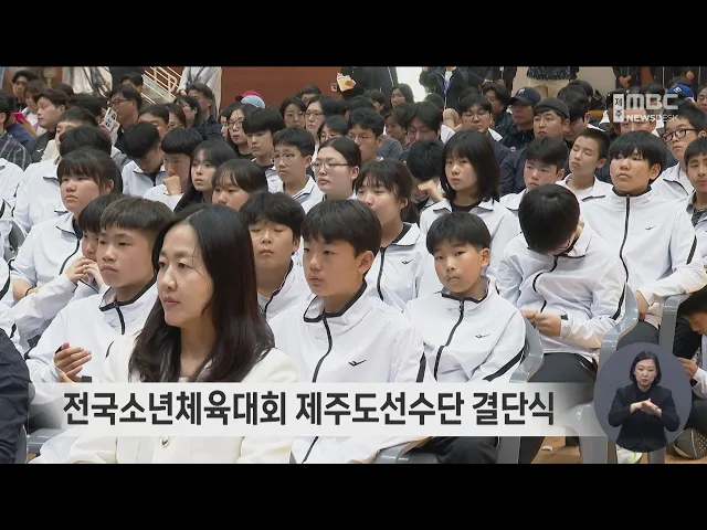 제54회 전국소년체육대회에 출전하는 제주도 선수단 결단식이 제주복합체육관에서 열렸습니다. 이번 대회에서 제주도 선수단은 29개 종목에 선수와 임원 663명이 출전하며 30개 이상의 메달 획득을 목표로 하고 있습니다. 전국소년체육대회는 오는 24일부터 27일까지 경상남도 일원에서 열리며 12살 이하와 15살 이하부...