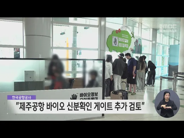 제주공항의 바이오 신분확인 게이트 시설이 부족하다는 mbc보도와 관련해 한국공항공사가 향후 여객 증가 추이를 지속적으로 모니터링해 필요시 추가 운영도 검토하겠다고 밝혔습니다. 공항공사는 미성년자 생체정보 등록대 운영시간이 하루에 한시간 미만이어서 불편하다는 지적에 대해서는 5월 가정의 달을 맞아 보안요원...