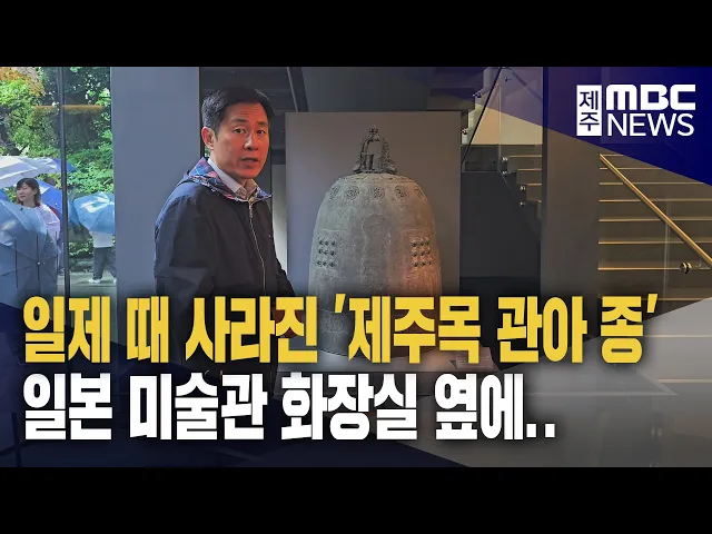 ◀ 앵 커 ▶ 조선시대 제주도청이었던 제주목 관아에는 백성들에게 시간을 알려주는 종이 있었는데요. 100여 년 전 일본이 제주목 관아를 철거하면서 종이 사라졌는데, 일본의 한 미술관 화장실 옆에서 발견됐습니다. 조인호 기자입니다. ◀ 리포트 ▶ 일본 도쿄 시내 중심가에 있는 네즈미술관입니다. 1941...