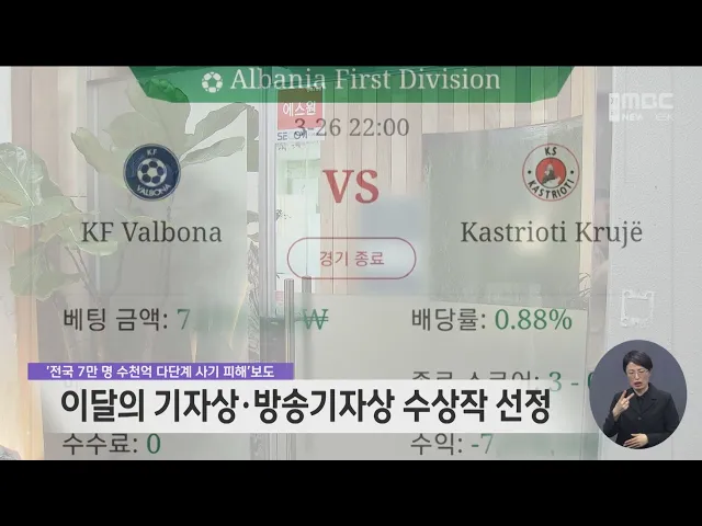 제주MBC가 보도한 '전국 7만명 수천억 다단계 사기 피해'가 한국기자협회의 이달의 기자상과 방송기자협회의 이달의 방송기자상 지역취재보도부문 수상작으로 잇따라 선정됐습니다. 제주MBC 이따끔 김현명 기자가 취재한 이번 보도는 제주지역에서 유행하는 역베팅 스포츠 도박 사이트의 실태를 단독 취재해 전국적으로 7...
