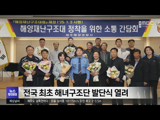 전국에서 처음으로 해녀구조단 발단식이 제주해양경찰서에서 열렸습니다. 해녀구조단에는 제주시 지역 어촌계 56곳 중 하도와 고산, 비양도 등 14개 어촌계의 해녀 176명이 참여했고 실종자 발생 등 유사시에 해경 파출소장이 연락해 협조를 요청하게 됩니다. 민간인 749명으로 구성된 해양재난구조대 임원 위촉식도 함께 ...