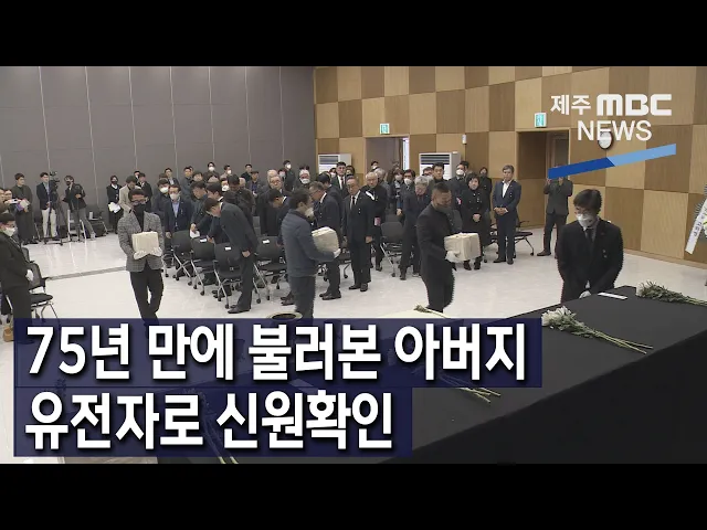 ◀ANC▶ 제주 4.3 사건 당시 집단학살된 뒤 행방불명됐던 희생자 3명의 유해에서 신원이 확인돼 70여 년 만에 가족들의 품으로 돌아왔습니다. 올해는 다른 지방 형무소에서 학살된 희생자 유해의 신원 확인작업도 시작돼 유족들의 안타까움을 달랠 수 있을지 기대를 모으고 있습니다. 조인호 기자입니다. ◀END▶ ◀VC...