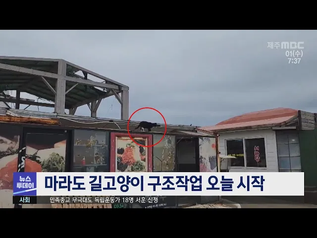 천연기념물인 뿔쇠오리를 위협한다는 논란이 일고 있는 마라도 길고양이 구조작업이 오늘부터 시작됩니다. 제주도 세계유산본부는 오늘 전국길고양이보호단체연합 등과 함께 마라도에서 길고양이 구조작업을 시작한 뒤 내일 구조된 고양이를 제주대 야생동물구조센터로 이송해 검진을 진행한다고 밝혔습니다. 한편 '유기동...