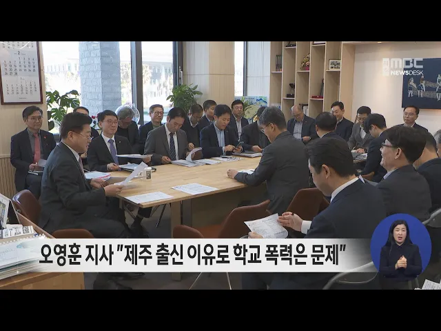 정순신 국가수사본부장 내정자가 아들의 학교 폭력 문제로 사퇴한 것과 관련해 오영훈 제주도지사가 제주 출신이라는 이유만으로 학교 폭력의 대상이 된 것은 문제라고 말했습니다. 오영훈 지사는 도정 현안을 공유한 자리에서 관련 제도가 제대로 지켜지는지 살펴보겠다며 해당 지역 교육청과 지방자치단체와도 협의해 제...