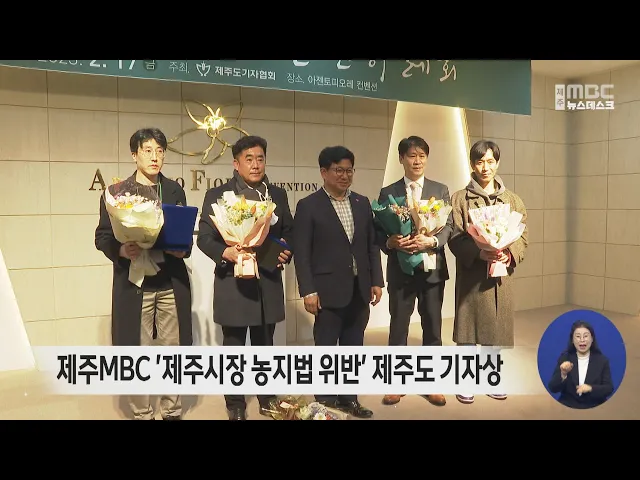 제주도기자협회 신년하례회에서 열린 2022년 제주도 기자상 시상식에서 취재 보도부문에 제주MBC 권혁태 박재정 강흥주 기자의 제주시장 후보자 농지법 위반 땅 투기 의혹 단독 보도가 수상했습니다. 이번 보도는 투기 의혹 소문에서 시작된 사안에서 현장 확인 등을 통해 농업경영계획이 허위로 작성된 사실을 밝혀내 시...
