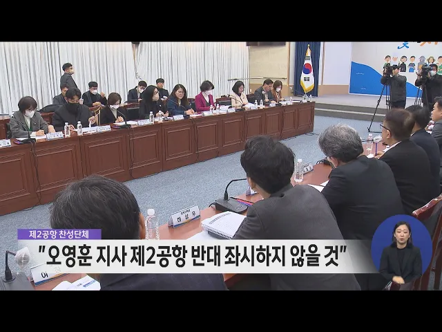 제2공항 성산읍추진위원회는 성명을 내고 오영훈 도지사의 제2공항에 대한 일방적 반대 행위를 좌시하지 않겠다고 밝혔습니다. 이들은 오영훈 지사가 시민단체와의 간담회에서 국토부 기본계획이 고시되면 제주도의 시간이 온다며 인허가 절차 과정에서 시민사회와 도민 의견을 반영하겠다고 한 것은 사실상 제2공항을 반...