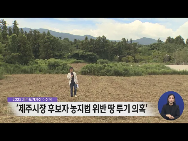 2022년 제주도기자상 취재보도부문 수상작에 제주MBC 권혁태 박재정 강흥주 기자의 '제주시장 후보자 농지법 위반 땅 투기 의혹 단독 보도'가 선정됐습니다. 이번 보도는 투기 의혹 소문에서 시작된 사안을 현장 확인과 등기부등본 등 여러 경로를 통해 농업경영계획이 허위로 작성된 사실을 밝혀냈고 결국, 시장 후보자가...