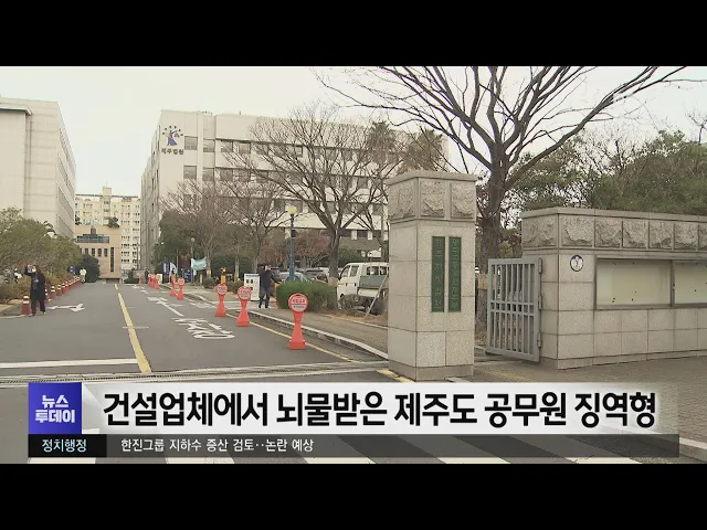 건설업자에게 집 공사비를 내도록 한 제주도청 공무원이 징역형을 선고 받았습니다. 제주지방법원 배구민 부장판사는 뇌물을 받은 혐의로 기소된 제주도청 5급 공무원에게 징역 2년에 집행유예 4년, 벌금 4천600만 원과 추징금 2천300만 원을 선고했습니다. 해당 공무원은 제주시 서부복합체육관 공사를 관리감독하면서 건...
