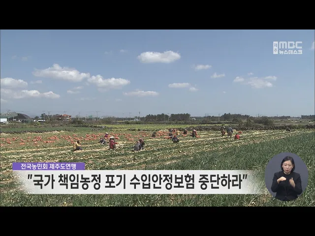 전국농민회 제주도연맹은 성명을 통해 국가의 책임농정을 포기하는 수입안정보험 확대를 중단하라고 요구했습니다. 이들은 농가의 소득을 보장한다는 수입안정보험은 보험상품으로 농민들의 입을 막겠다는 것이며 이윤을 추구하는 민간 보험회사에 맡기는 것은 정부가 농업을 포기하고 보험회사의 판매사원으로 전락하는 것...