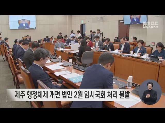 제주형 행정체제 개편 관련 법안의 2월 임시국회 처리가 불발됐습니다. 국회 행정안전위원회는 전국적으로 특별자치도 관련 법안이 많아 정부와 일괄적으로 논의해야 한다며 이번 임시회에서는 지역 관련 법안을 심사하지 않기로 결정했습니다. 행안위에는 더불어민주당 위성곤 의원이 발의한 제주에 기초자치단체를 부활하...