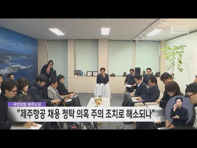 국민의힘 제주도당은 논평을 통해 도지사 정무비서관의 제주항공 채용 청탁 의혹이 주의 조치로 해소될 사안이냐며 비판했습니다. 국민의힘은 도지사의 안일한 인식이 이런 사태를 만든 근본 원인이고, 분명히 위법한 사항이지만 어디로 불똥이 튈지 몰라 자체 감사도 못하고 있다며, 오영훈 지사의 무책임한 조치는 제주도...