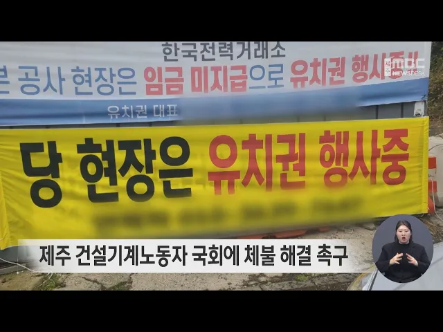 민주노총 건설노조 제주지부는 국회 앞에서 기자회견을 갖고 건설기계노동자들에 대한 임금체불 해결과 방지입법을 요구했습니다. 이들은 설 연휴를 앞두고 제주지역 건설기계 현장 다섯군데에서 1억 3천여만 원이 체불됐고, 윤석열 정권이 건설노조를 건폭으로 부르며 탄압하는 바람에 임대차계약 등 기본적인 제도조차 지...