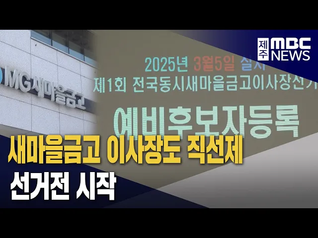 ◀ 앵 커 ▶ 지역 주민들이 함께 운영하는 서민금융기관인 새마을금고 이사장 선거에도 올해부터 직선제가 도입됩니다. 오는 3월 전국적으로 동시에 실시되는 첫번째 선거를 앞두고 제주에서도 본격적인 선거전이 시작됐습니다. 조인호 기자입니다. ◀ 리포트 ▶ 제주시내 중심가의 한 새마을금고입니다. 동문재래시장...