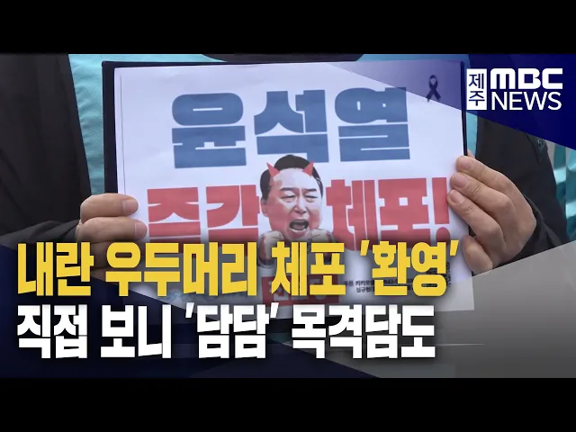 ◀ 앵 커 ▶ 헌정 사상 처음으로 현직 대통령이 체포되면서 제주지역 정치권도 술렁이고 있습니다. 오영훈 제주도지사와 야당들은 내란사태를 종식시켜야 한다며 윤석열 대통령 체포를 환영했지만 국민의힘은 착잡한 분위기 속에 윤 대통령을 직접 찾아가기도 했습니다. 조인호 기자입니다. ◀ 리...