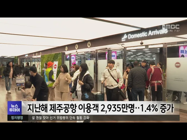 지난해 제주공항 이용객이 2천 935만명으로 재작년보다 1.4% 늘었습니다. 제주도에 따르면 지난해 국내선 이용객은 2천 692만명으로 재작년보다 3% 줄었지만 국제선은 243만명으로 104.9% 늘었습니다. 공급 좌석은 국내선이 2.7% 줄었고 국제선은 97.9% 늘었습니다. 지난해 국내선 탑승률은 90.3%로 재작년보다 0.3%포...