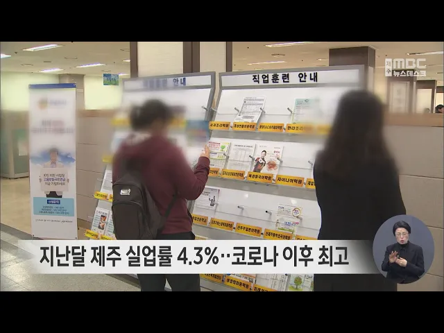 지난달 제주지역 실업률이` 코로나19 사태 이후 최고치를 기록했습니다. 통계청 제주사무소에 따르면 지난달 제주지역 실업률은 4.3%로 일년 전보다 2.1%포인트 올랐고 2021년 1월 5.2%를 기록한 이후 3년 11개월 만에 최고치를 기록했습니다. 실업자도 만 8천명으로 일년 전보다 두배로 늘었는데 취업자는 도소매 숙박...