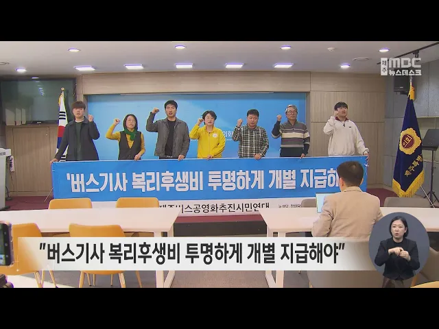 제주 버스공영화 추진 시민연대는 제주도의회에서 기자회견을 갖고 버스기사 복리후생비를 투명하게 개별 지급하라고 요구했습니다. 이들은 제주도가 준공영제 버스업체에 지급한 복리후생비가 노동자의 복지가 아닌 다른 목적으로 쓰인다는 의혹이 있는데도 정산결과가 영업상 비밀이라며 공개하지 않아 불신을 키우고 ...