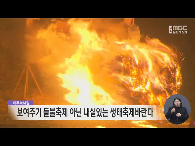 제주녹색당은 논평을 통해 보여주기시의 들불축제가 아닌 내실 있는 생태축제를 바란다고 밝혔습니다. 이들은 제주시가 오름 불놓기를 폐지한 것은 환영하지만 불꽃쇼는 폐지되지 않았다고 비판했습니다. 또, 불놓기를 대체한 미디어아트는 이미 대부분의 지자체 축체에서 유행처럼 번지는 형식인데다 많은 예산이 들어...