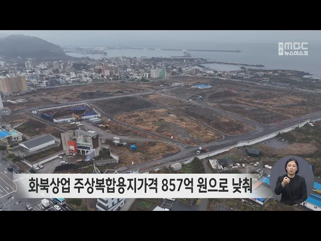 제주시가 장기간 팔리지 않고 있는 화북상업지역의 주상복합용지 최저입찰가격을 927억원에서 857억원으로 낮췄습니다. 지금까지 팔지 않은 상업용지 6필지도 최저 5억원에서 최고 36억원에 입찰에 부쳐 매각하기로 했습니다. 제주시는 2021년 주상복합용지를2천 660억원에 팔았지만, 지난해 부동산업체가 개발을 포기하...