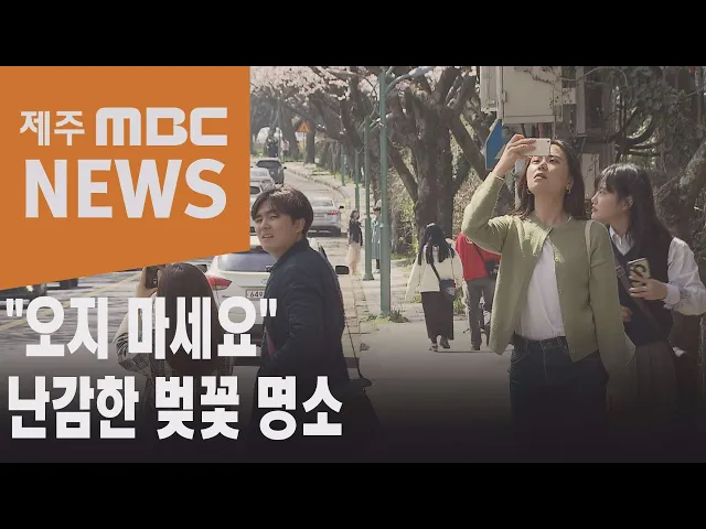 ◀ANC▶ 해마다 이맘 때면 봄을 알리는 벚꽃 축제가 열리지만 올해는 코로나19가 확산될 수 있다는 우려 때문에 취소됐는데요. 포근한 날씨 속에 벚꽃이 만발하자 봄을 만끽하려는 상춘객들이 몰려드는 바람에 벚꽃 명소마다 난감해하고 있다고 합니다. 조인호 기자입니다. ◀END▶ ◀VCR▶ 한라산 기슭을 화려하게 수...