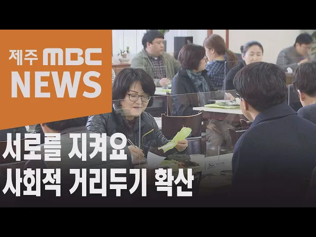 ◀ANC▶ 코로나19 감염을 막기 위해직접적인 대면 접촉을 피하는 사회적 거리두기 운동이 확산되고 있는데요. 제주에서도 다양한 형태의 사회적 거리두기가 진행되면서우리 주변의 일상이 달라지고 있습니다. 조인호 기자입니다. ◀END▶ ◀VCR▶ 구내식당 테이블 위에 투명한 가림막이 설치됐습니다. 식사 중에 앞 사...