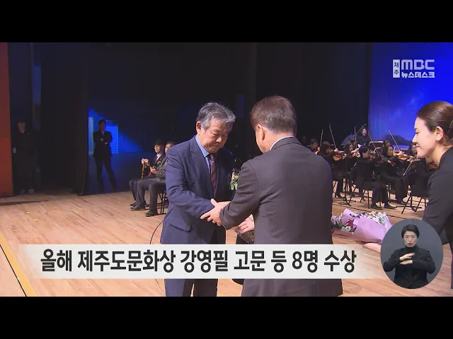 올해 제주도문화상 시상식이 제주도문예회관에서 열렸습니다. 제주의 역사와 문화를 조명하고 4.3 해결방안을 모색한 강영필 제주언론인클럽 상임고문이 언론출판 부문상을 받았고, 파리올림픽 금메달리스트인 오예진 선수를 지도한 홍영옥 사격 국가대표 코치가 체육 부문상을 받았습니다. 현병찬 제주도 한글서예사랑모임...