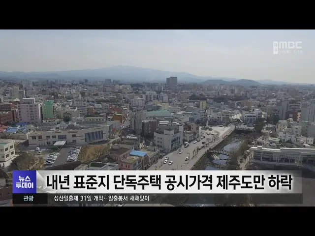 제주지역의 내년 표준지와 표준 단독주택 공시가격이 전국에서 유일하게 하락했습니다. 국토교통부에 따르면 내년 1월 1일 기준 제주지역 표준지 공시지가는 올해보다 평균 0.26% 하락했고 표준 단독주택 공시가격도 평균 0.49% 하락했습니다. 전국적으로는 제주도를 제외한 모든 광역 시.도에서 공시지가와 단독주택 가격...