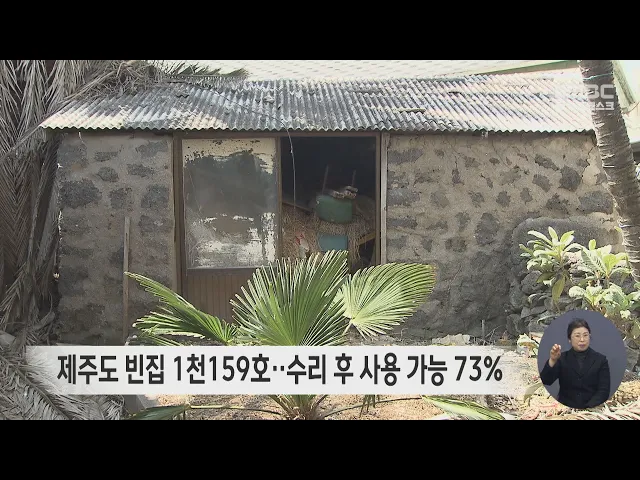 제주에 빈 집이 천159호인 것으로 조사됐습니다. 제주도가 올해 한국부동산원에 맡겨 11개월동안 현장조사를 벌인 결과 빈집의 분포 지역은 제주시가 68%, 서귀포시가 32%였고 농어촌지역이 66%로 도시지역의 34%보다 갑절 가까이 많았습니다. 빈집의 상태는 안전조치나 수리를 한 뒤 사용할 수 있는 2등급이 73%였고 철거...