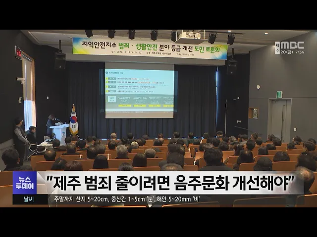 제주지역 범죄를 줄이기 위해 음주문화를 개선해야한다는 주장이 제기됐습니다. 국립재난안전연구원 신진동 박사는 지역안전지수 개선 도민 토론회에서 제주지역 고위험 음주율과 음주운전 경험률이 높고 인구 대비 주점도 많아 주취폭력 발생률도 높다며 음주문화를 개선해야 한다고 주장했습니다. 오영훈 제주도지사도 제...