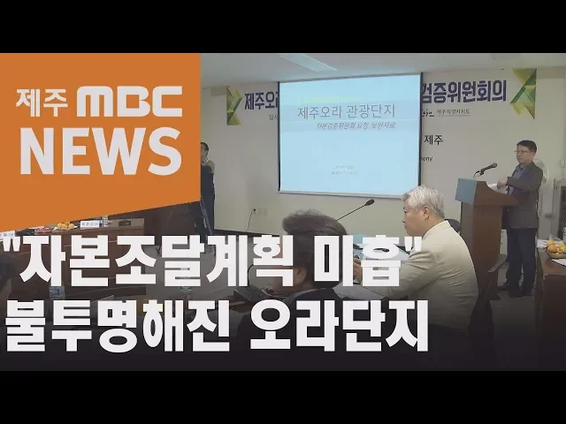 ◀ANC▶ 5조 원대 자본이 투자된다는 제주지역 최대 개발사업인오라관광단지를 놓고4년 넘게 논란이 이어지고 있는데요. 사업자의 자본조달계획이 미흡하다는 결론이 내려질 것으로 보여 향후 사업 추진에 난관이 예상됩니다. 조인호 기자입니다. ◀END▶ ◀VCR▶ 지난해 12월 이후 열달 만에야 열린오라관광단지 자본...
