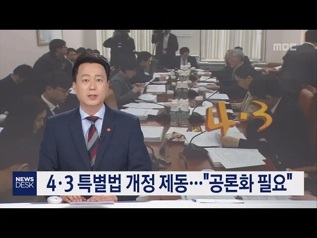 ◀ANC▶ 제주 4.3사건 희생자들에게 국가가 배.보상하는 것을 골자로 하는 4.3 특별법 개정안이 국회 상임위의 법안 심사에서 제동이 걸렸습니다. 정부가 배.보상에 앞서 공론화 과정이 더 필요하다며, 사실상 반대 입장을 밝힌 것이 결정적이었습니다. 조인호 기자입니다. ◀END▶ ◀VCR▶ 여.야의 쟁점법안들을 다루...
