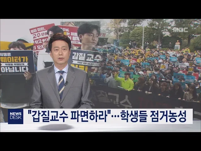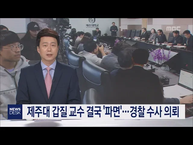 ◀ANC▶ 제주대학교가 폭언과 성희롱은 물론, 학생들의 수상작품에 자녀의 이름을 끼워 넣었다는 갑질 논란을 빚은 교수에 대한 징계위원회를 열었습니다. 학생들은 교수를 파면하라며 점거 농성을 벌였습니다. 조인호 기자입니다. ◀END▶ ◀VCR▶ "갑질 교수 파면하라! 파면하라!" 제주대 본관 앞을 학생들이 가득 메...