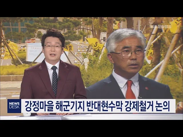 ◀ANC▶ 내일(10/10 오늘)부터 제주 해군기지에서 국제 관함식이 열리지만, 일부 주민과 시민단체들의 반대로 충돌이 우려되고 있는데요. 관함식 준비 과정에서 강정마을에 걸린 해군기지 반대 현수막을 강제철거하는 문제가 관계기관들 간에 논의됐던 것으로 밝혀졌습니다. 조인호 기자입니다. ◀END▶ ◀VCR▶ 지난 2...