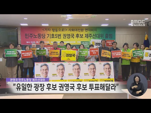 권영국 민주노동당 후보 제주선거대책위원회는 입장을 내고 유일한 광장후보, 진보 후보 기호 5번 권영국에게 투표해달라고 호소했습니다. 이들은 어제 열린 마지막 대선 방송토론은 상대 후보에 대한 비방과 혐오, 성폭력 발언까지 서슴지 않는 역대 최악의 토론이었다며 정책과 비전을 제시한 후보는 권영국 후보가 유...