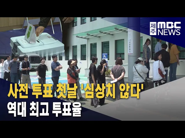 ◀ 앵 커 ▶ 오늘 사전 투표 많이들 하셨나요? 점심시간에 하신 분들은 줄 서서 기다린 경우도 많았을텐데요. 사전 투표 첫날 제주지역 투표율도 지난 대선은 물론, 역대 최고를 기록했습니다. 박주연 기자가 보도합니다. ◀ 리포트 ▶ 제주도의회 의원회관에 마련된 사전투표소. 이른 아침부터 소중한 한 표를 행사하려는 유권...