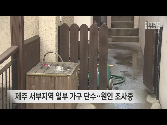 제주 서부지역에 단수가 되면서 일부 가구의 불편이 이어졌습니다. 제주도 상하수도본부에 따르면 어제 오후 4시쯤 한경면 지역에서 처음 단수 신고가 들어온 뒤 저녁 8시 반부터 단수 신고 3건이 추가로 접수됐습니다. 상하수도본부는 비상 급수를 통해 단수 가구에 수돗물을 공급했는데, 한국수자원공사 등과 함께 정...