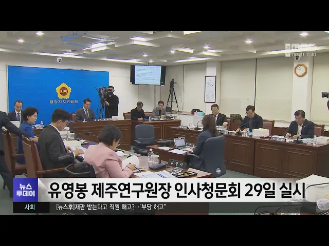 유영봉 제주연구원장 후보자에 대한 인사청문회가 오는 29일 진행됩니다. 제주도의회 행정자치위원회는 어제 임시회 회의에서 유영봉 제주연구원장 후보자 인사청문 실시계획서를 채택했습니다. 유 후보자는 제주대 생명자원과학대 학장과 한국농업경제학회장 등을 역임했고, 지난 2월 제주대에서 명예퇴직을 했습니다.