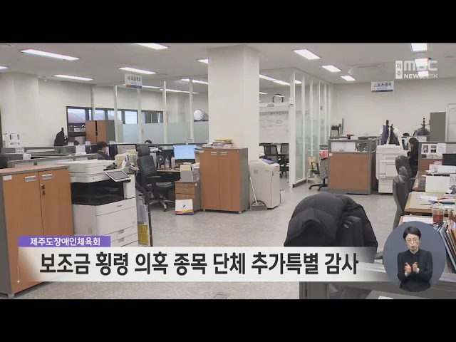 제주MBC가 보도한 장애인체육단체의 보조금 횡령 의혹 사건에 대해 제주도장애인체육회가 추가 특별 감사에 착수했습니다. 제주도장애인체육회는 회계전문가를 비롯한 감사팀이 해당 종목단체 사무실을 찾아 3년치 회계자료 등을 확보해 조사에 돌입했고, 해당 전무이사의 카드 사용 내역을 추가 요청했다고 밝혔습니다. 또...