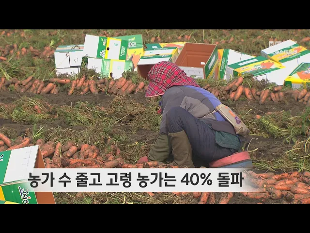 제주지역 농가 수는 감소하는 가운데 고령 농가 비중은 크게 늘고 있습니다. 통계청에 따르면 지난해 12월 1일 기준 제주지역 농가는 2만 9천여 가구로, 1년 전보다 4% 줄었습니다. 농가 인구도 6만 8천여 명으로 1년 새 5.9%, 10년 동안은 37.2% 감소했습니다. 65살 이상 고령 농가는 2만 7천여 명으로 전체 농가 인구의 4...
